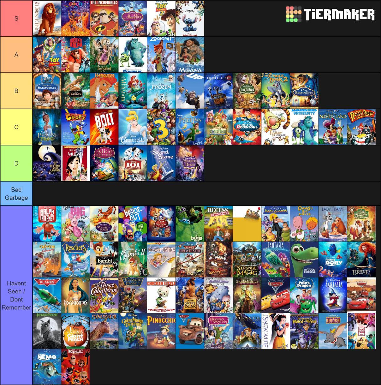 Disney Animated Movie Tier List Fandom